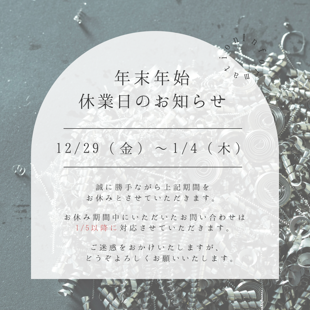 誠に勝手ながら、弊社では2023年12月29日(金)~2024年1月4日(木)を年末年始休業とさせていただきます。