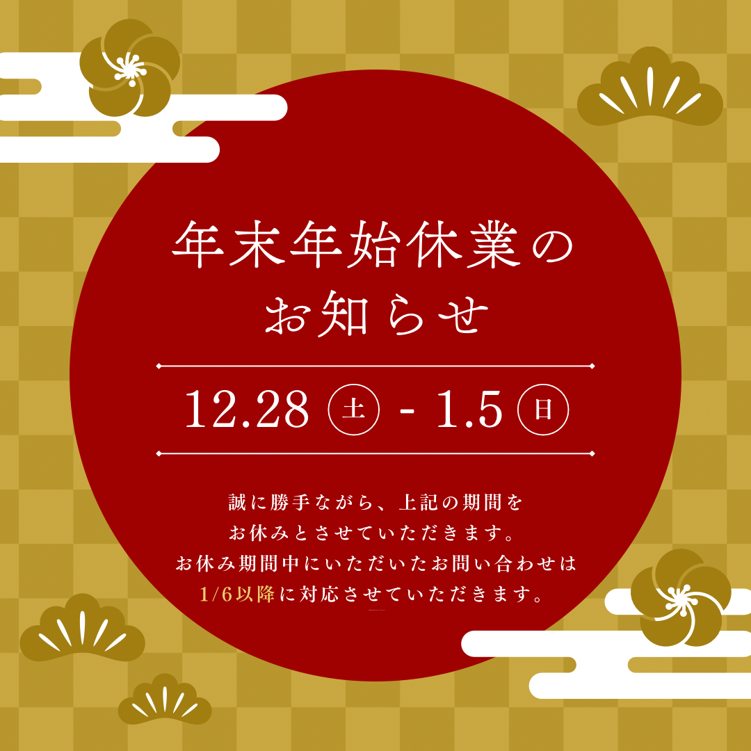誠に勝手ながら、弊社では2024年12月28日(土)~2025年1月5日(日)を年末年始休業とさせていただきます。
